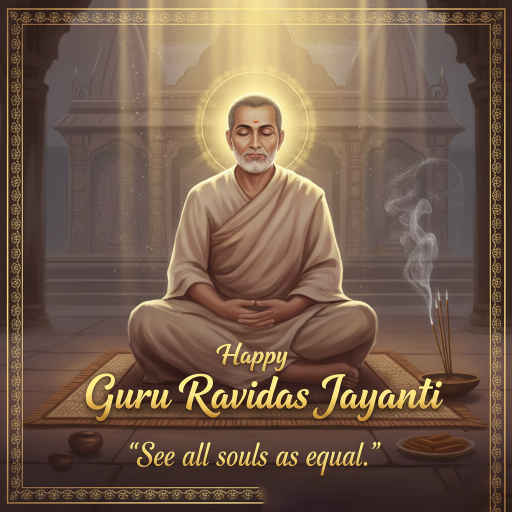 Download this high-quality Guru Ravidas Jayanti Spiritual Poster image, perfect for happy guru ravidas jayanti, social media posts, festival greetings, event designs, banners, and creative projects. Clean quality, ready to use, and easy to customize.