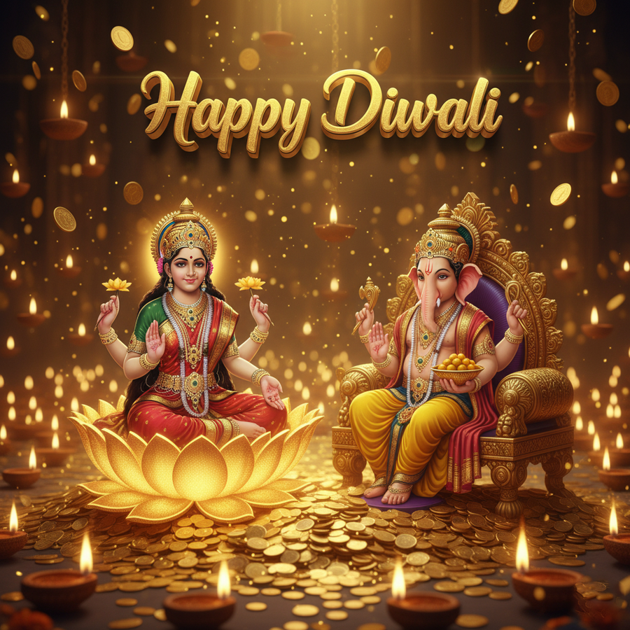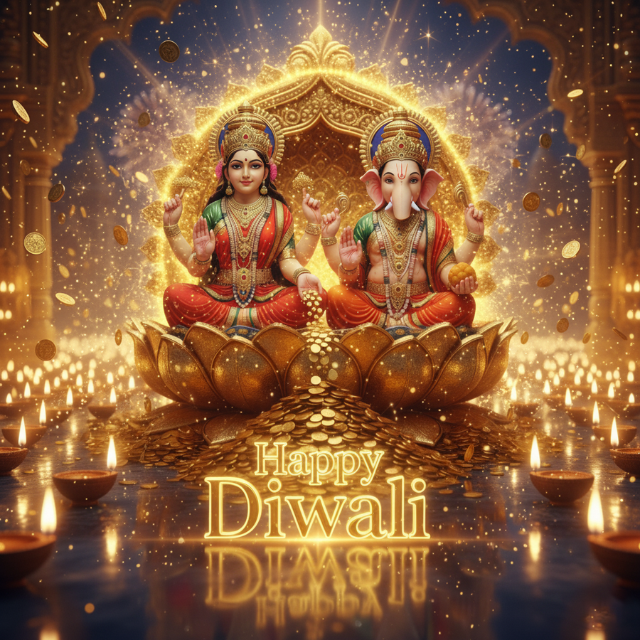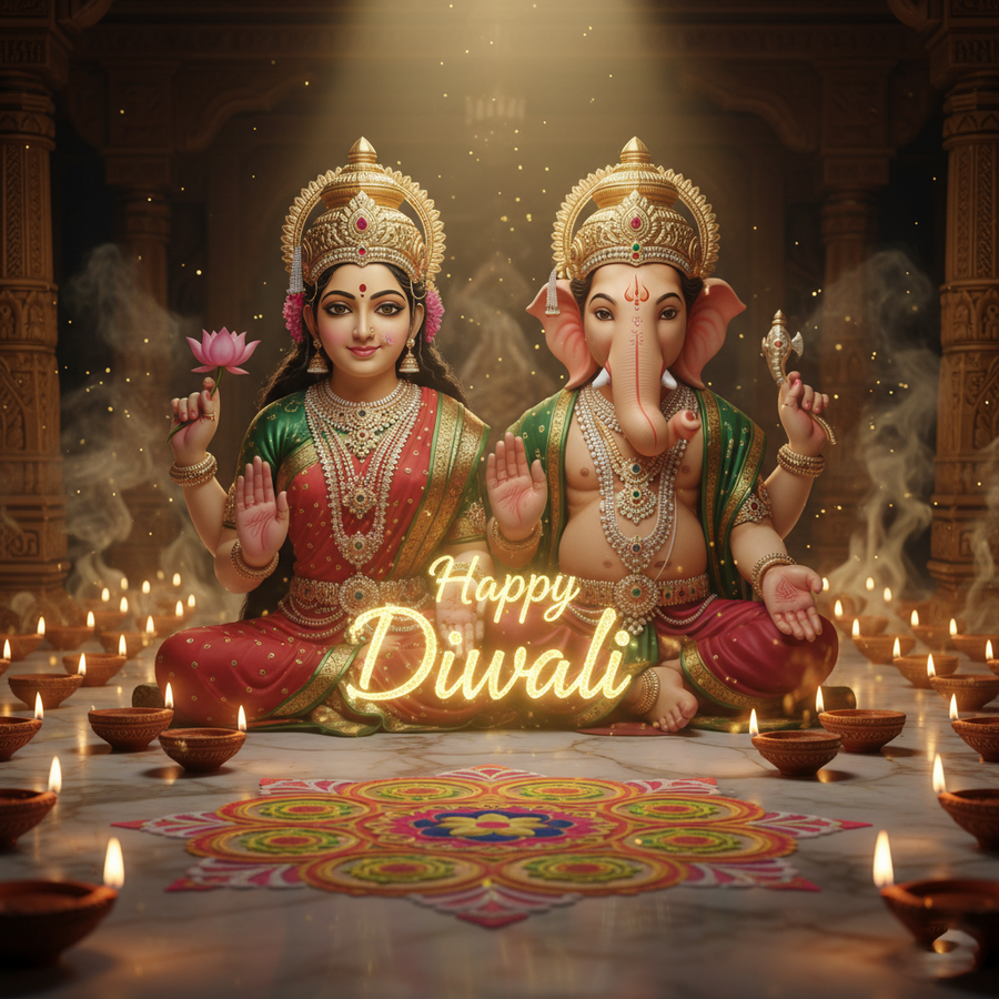 From our exclusive happy diwali with lakshmi collection, this 'happy diwali 2025 photo with lakshmi ganesh sitting together' image designed to add a professional and creative touch to your work.