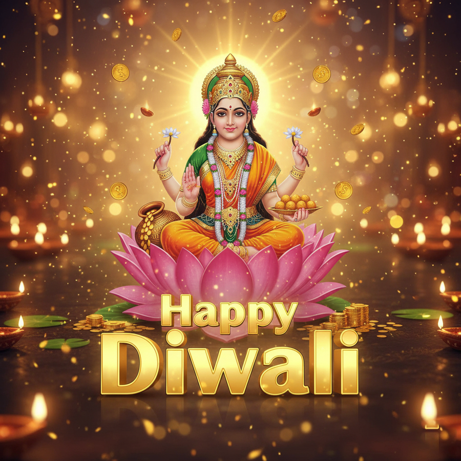 Capture attention instantly with this high-quality 'happy diwali with lakshmi images hd' graphic, showcasing vibrant colors and crystal-clear resolution.