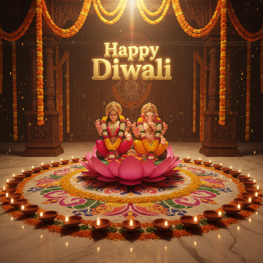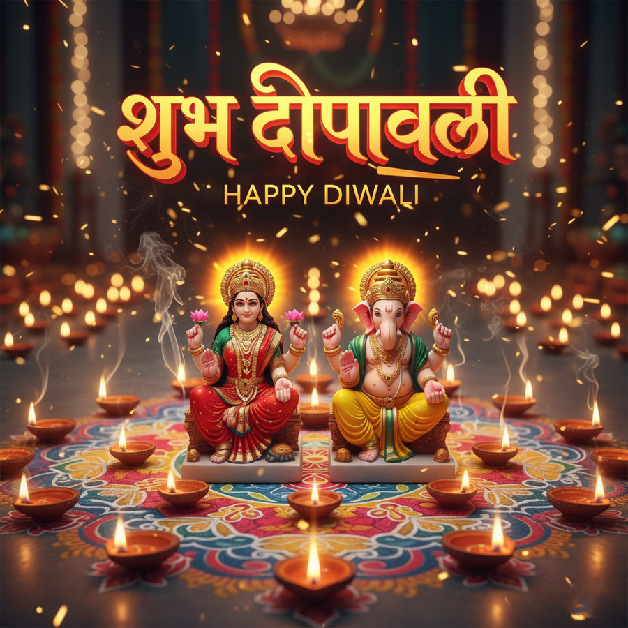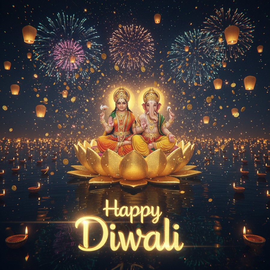 Capture attention instantly with this high-quality 'happy diwali hd picture with lakshmi ganesh blessings' graphic, showcasing vibrant colors and crystal-clear resolution.