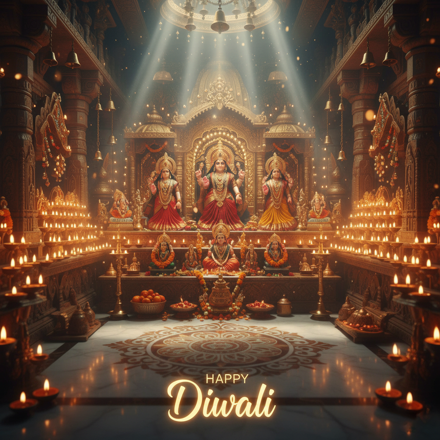 Elevate your project with this stunning 'happy diwali card design with lakshmi ganesh mandir' photo, meticulously crafted to ensure the highest quality for your needs.