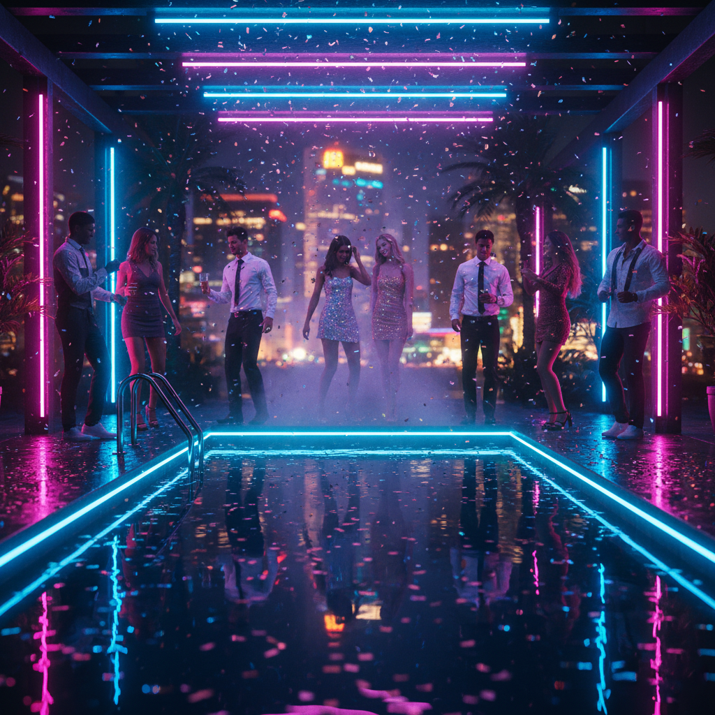 Capture attention instantly with this high-quality 'new year party background aesthetic style' graphic, showcasing vibrant colors and crystal-clear resolution.