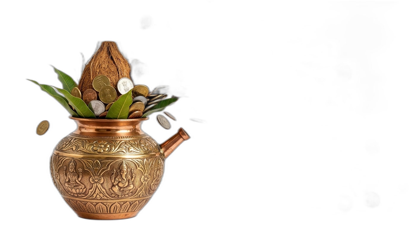 Download this high-quality Kalash With Coins And Coconut Png Image image, perfect for golden puja kalash with gold coins png, social media posts, festival greetings, event designs, banners, and creative projects. Clean quality, ready to use, and easy to customize.