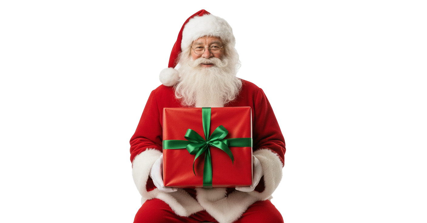 Download this high-quality Santa Claus With Shiny Gifts Png image, perfect for santa claus with gifts png, social media posts, festival greetings, event designs, banners, and creative projects. Clean quality, ready to use, and easy to customize.