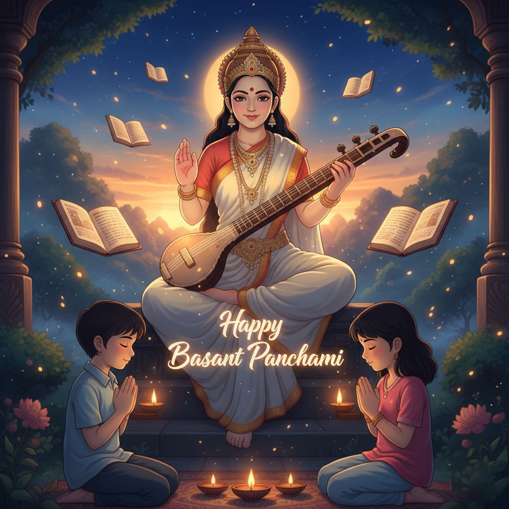 Free Happy Basant Panchami Wishes Saraswati Maa Blessings HD Download