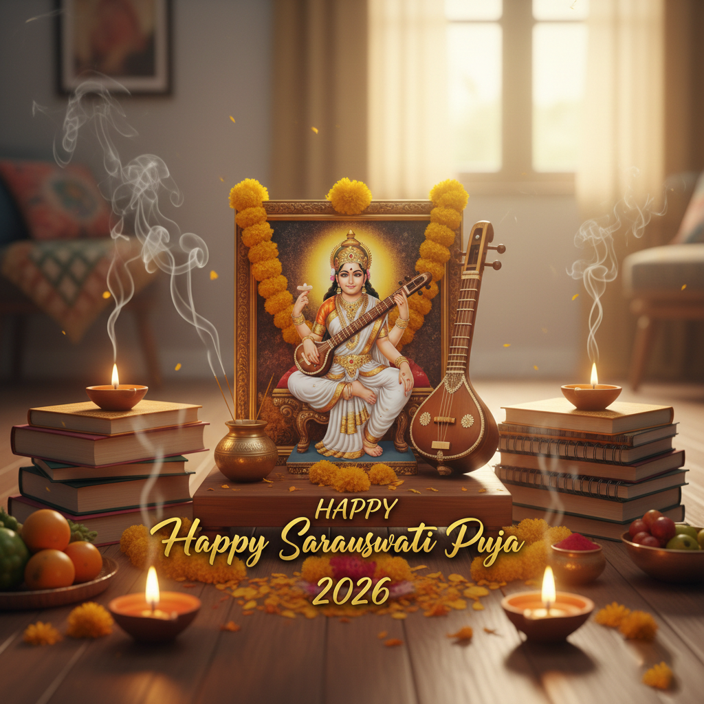 Free Happy Saraswati Puja 2026 Creative Background HD Download