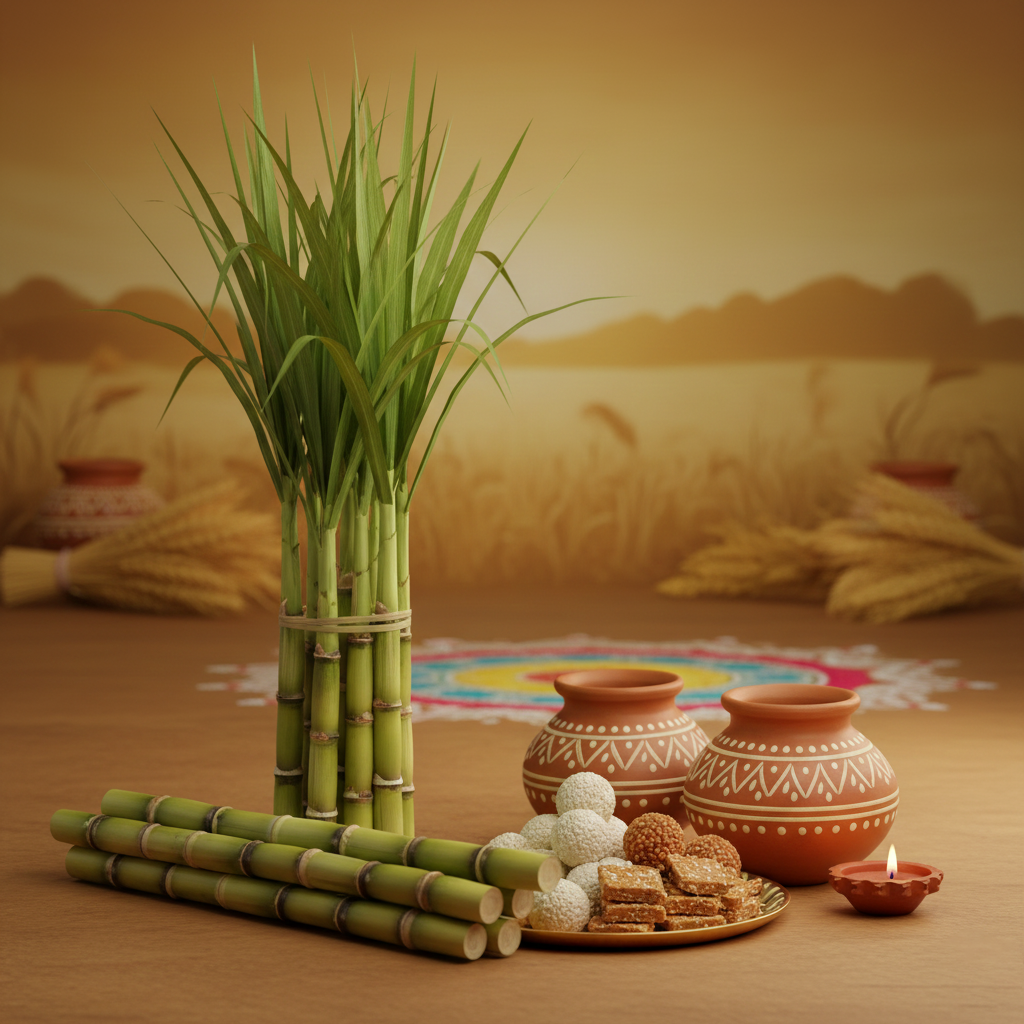 Free Makar Sankranti Background Sugarcane And Kites HD Download