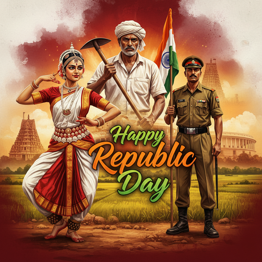 Download this high-quality Happy Republic Day Creative Poster image, perfect for happy republic day, social media posts, festival greetings, event designs, banners, and creative projects. Clean quality, ready to use, and easy to customize.