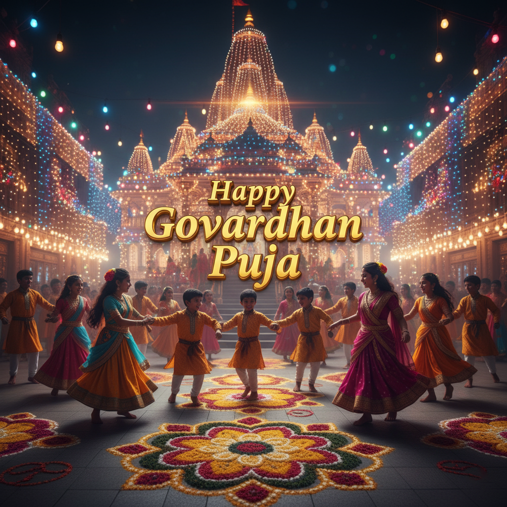 Free Happy Govardhan Puja Quotes With Krishna Photo For Social Media HD Download