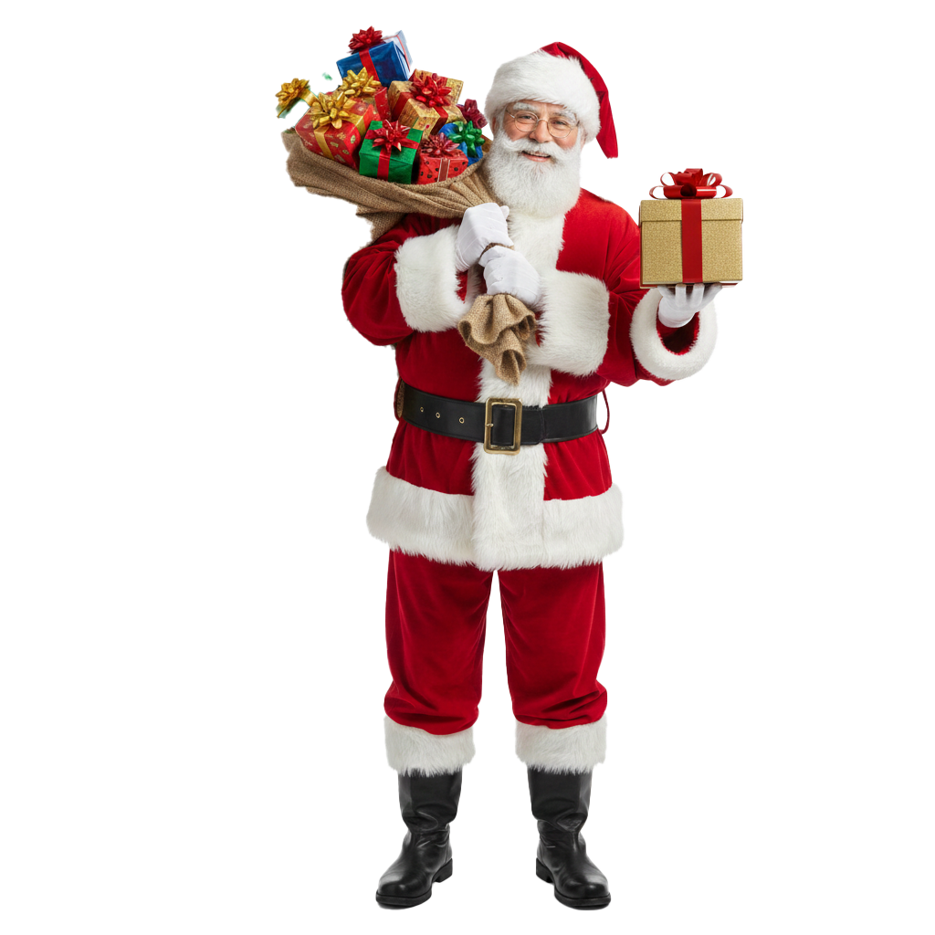 Download this high-quality Santa Claus With Snow And Gifts Png image, perfect for santa claus with gifts png, social media posts, festival greetings, event designs, banners, and creative projects. Clean quality, ready to use, and easy to customize.