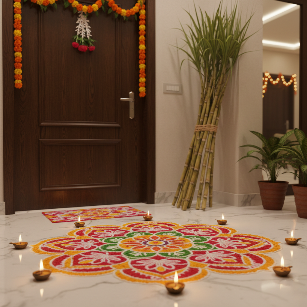 Free Makar Sankranti Background Orange Theme HD Download