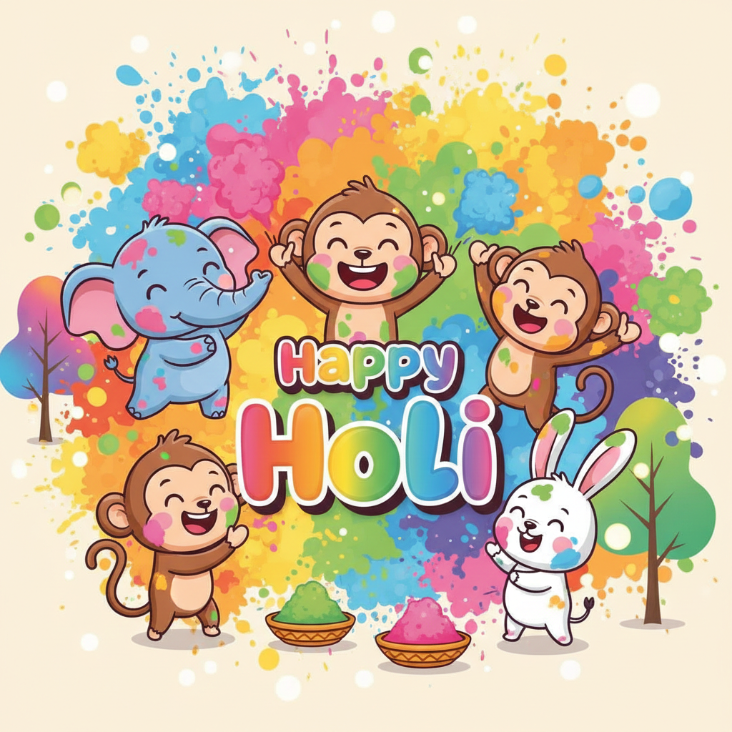 Free Happy Holi Greeting Card Cute Cartoon Theme 2 HD Download