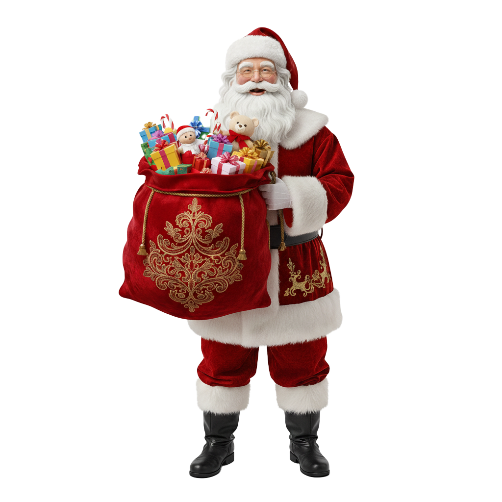 Download this high-quality Santa Claus With Children Giving Gifts Png image, perfect for santa claus with gifts png, social media posts, festival greetings, event designs, banners, and creative projects. Clean quality, ready to use, and easy to customize.