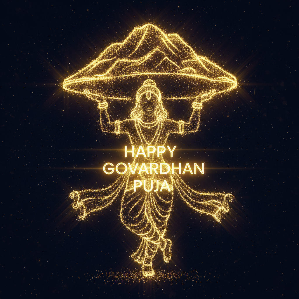Free 3d Happy Govardhan Puja Text Art With Glowing Diya Lights HD Download