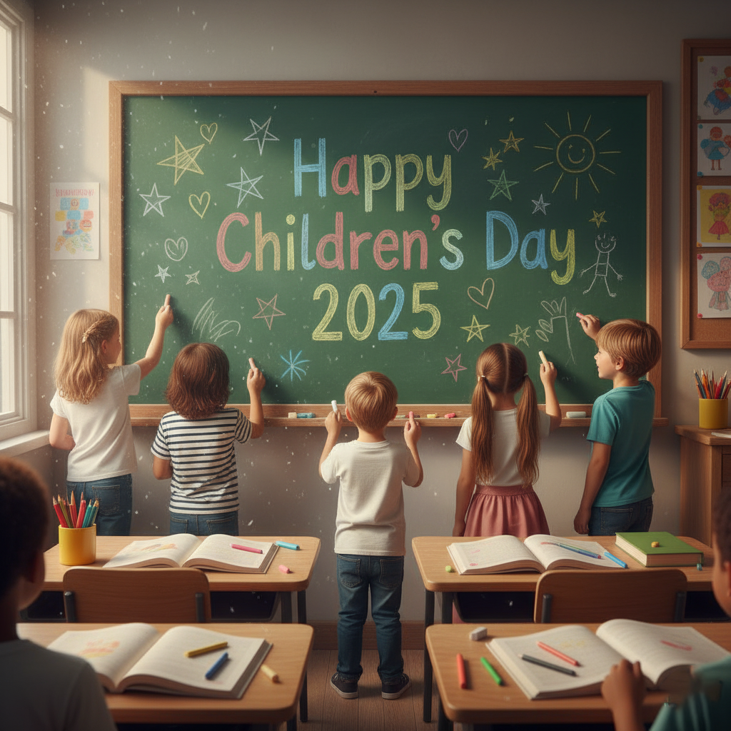 Free Happy Childrens Day 2025 Card For Teachers To Students HD Download