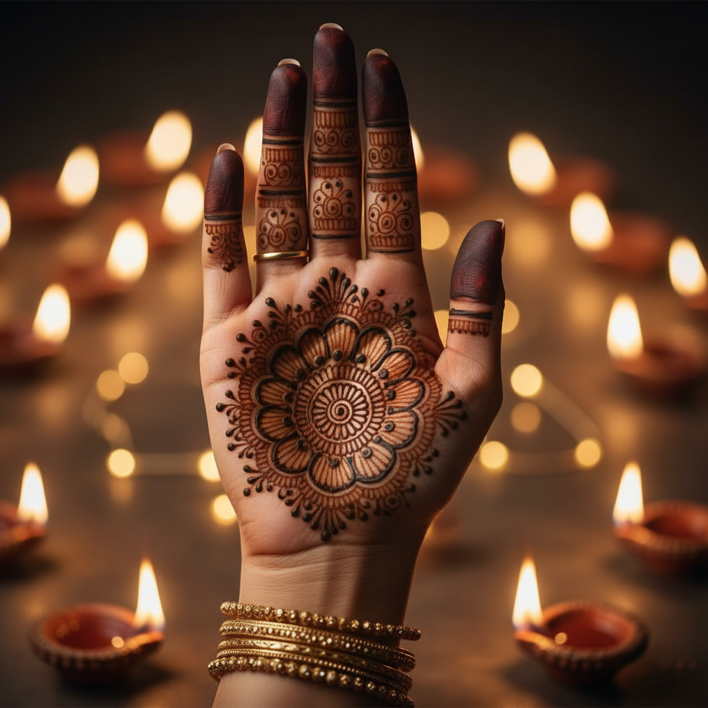 Download this high-quality Geometric Karva Chauth Mehndi Design image, perfect for karva chauth mehndi design, social media posts, festival greetings, event designs, banners, and creative projects. Clean quality, ready to use, and easy to customize.