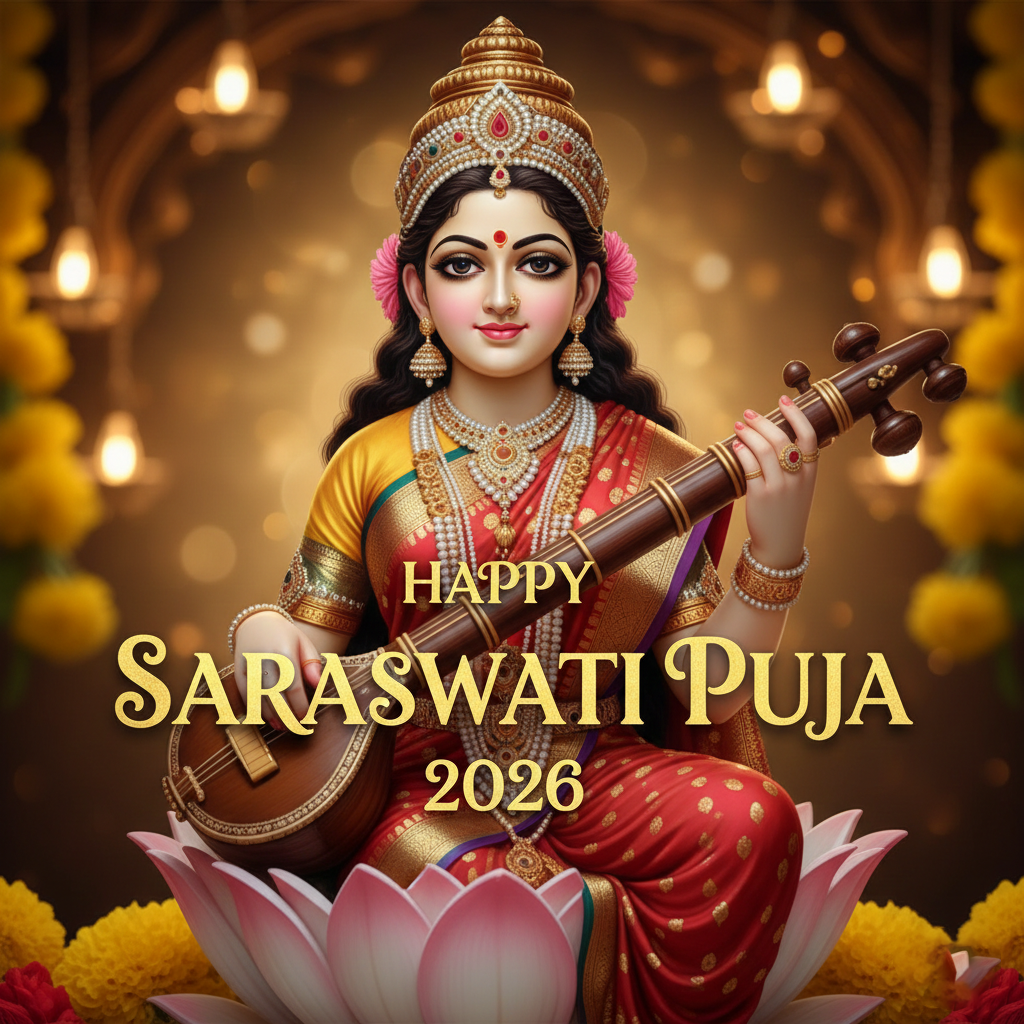 Download this high-quality Happy Saraswati Puja 2026 Best Wishes Images image, perfect for happy saraswati puja 2026, social media posts, festival greetings, event designs, banners, and creative projects. Clean quality, ready to use, and easy to customize.