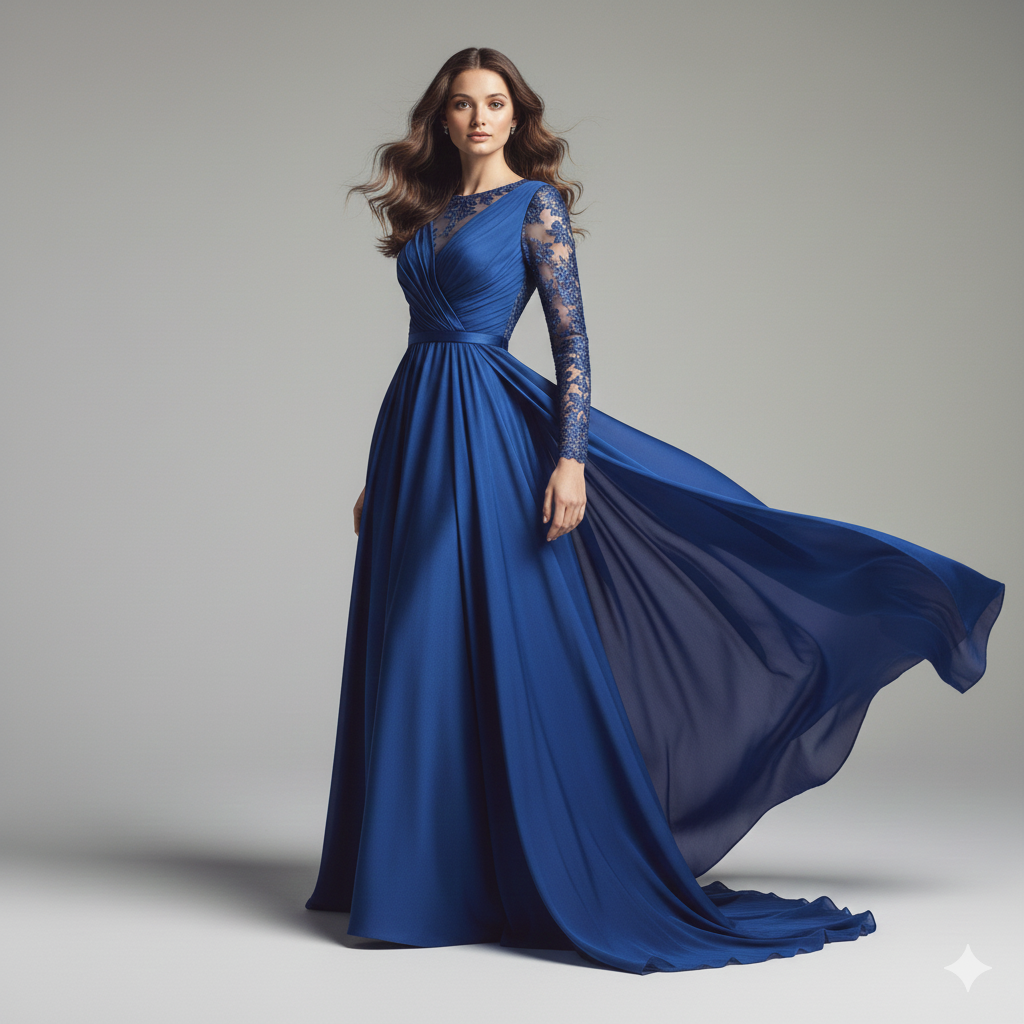 Capture attention instantly with this high-quality 'classy blue designer dress girl photoshoot image' graphic, a perfect representation of the blue design category.